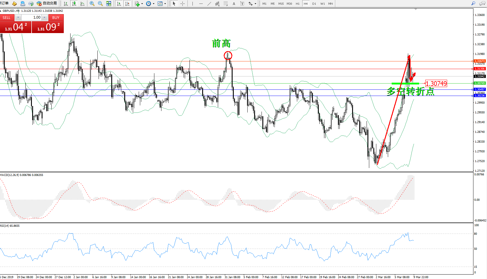 交易策略:1.30749上方看涨,目标1.313561.31673
