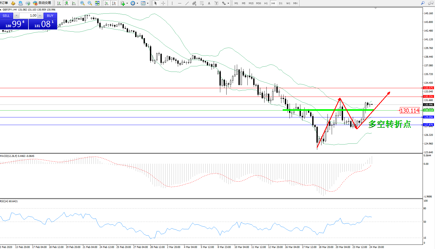 英镑兑日元刚刚触及131.00关口,最新报131.00,日图涨0.15%英国3月服务业PMI创历史新低,3月综合PMI为历史新低,3月制造业PMI3个月新低,英国PMI数据突显疫情爆发对英国经济造成巨大打击,程度甚至高于全球金融危机最严重时期。采取额外的防控措施将在未来数月进一步使经济瘫痪;出现一场我们可能前所未见的大规模经济衰退的可能性越来越大;历史数据显示,3月调查数据与GDP增速季率环比下降1.5%-2.0%相符,这一降幅足以使经济在第一季度陷入萎缩。然而,这一下降或只是冰山一角,且会变得微不足道,第二季度将见证疫情造成更大的损失和经济低迷。