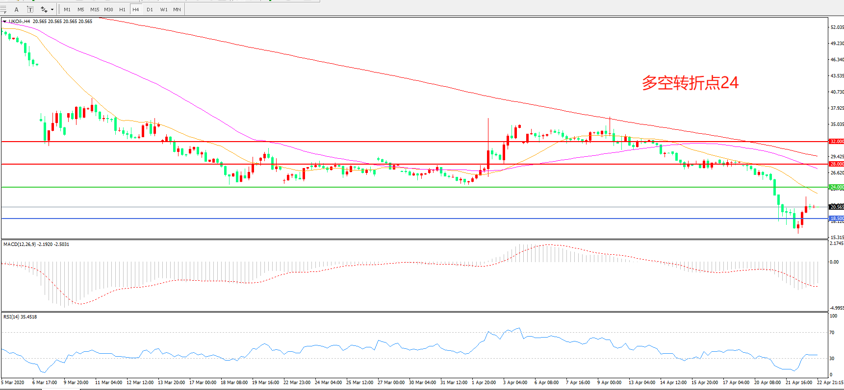 周三(4月22日),美国总统特朗普周三发表的推文使与伊美国朗的紧张关系加剧,为油价提供了支撑。特朗普发推称,如果伊朗在海上骚扰美国的船只,美国海军将击落并摧毁其炮艇。受此影响,陷入历史性崩跌浪潮的原油终于看到了一丝曙光,布伦特原油大幅走高, 收报20.56美元/桶。