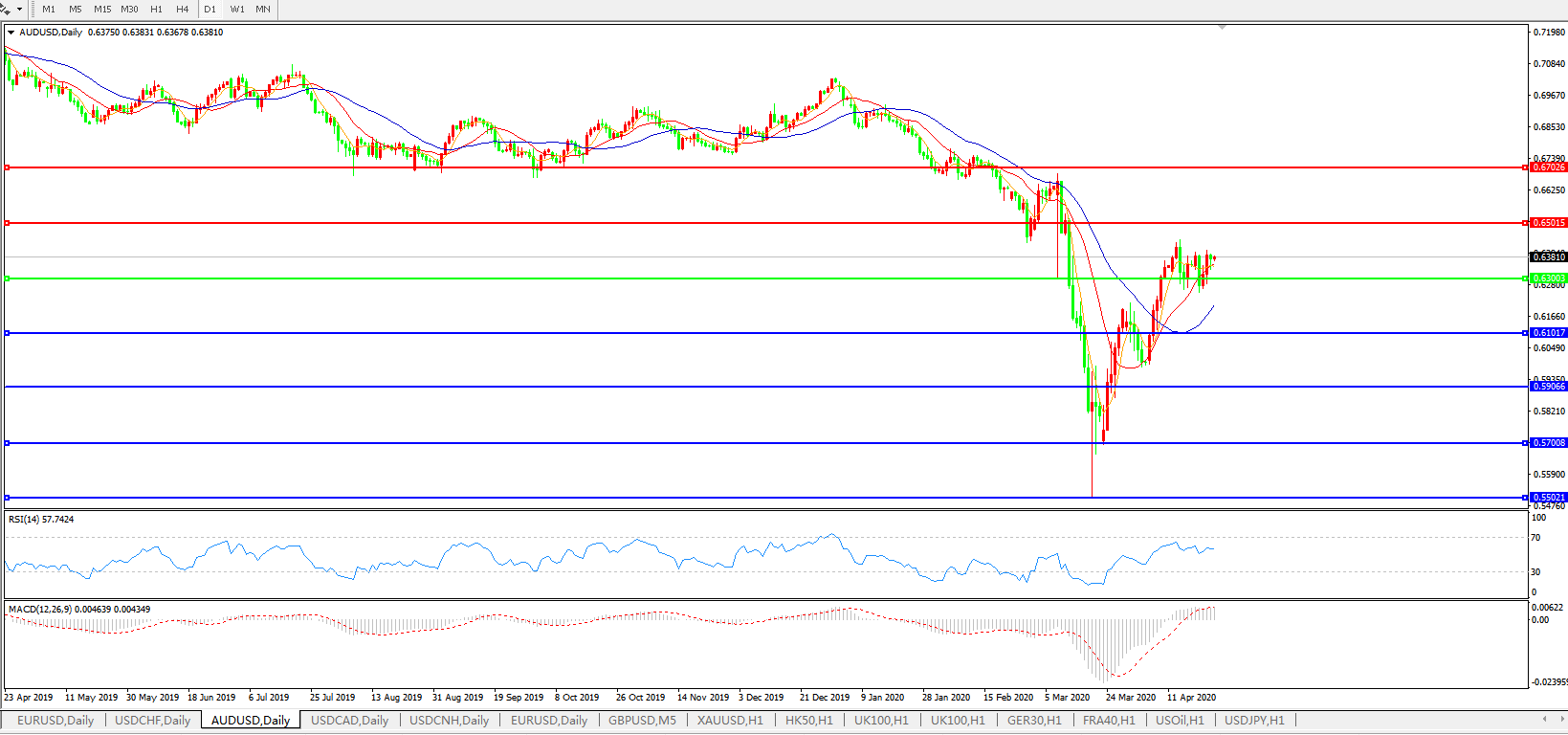 交易策略:0.6300上方看涨,目标0.6500、0.6700