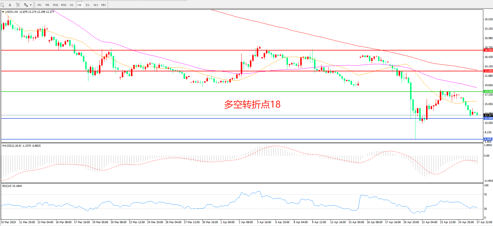 美国原油USOIL     4小时图