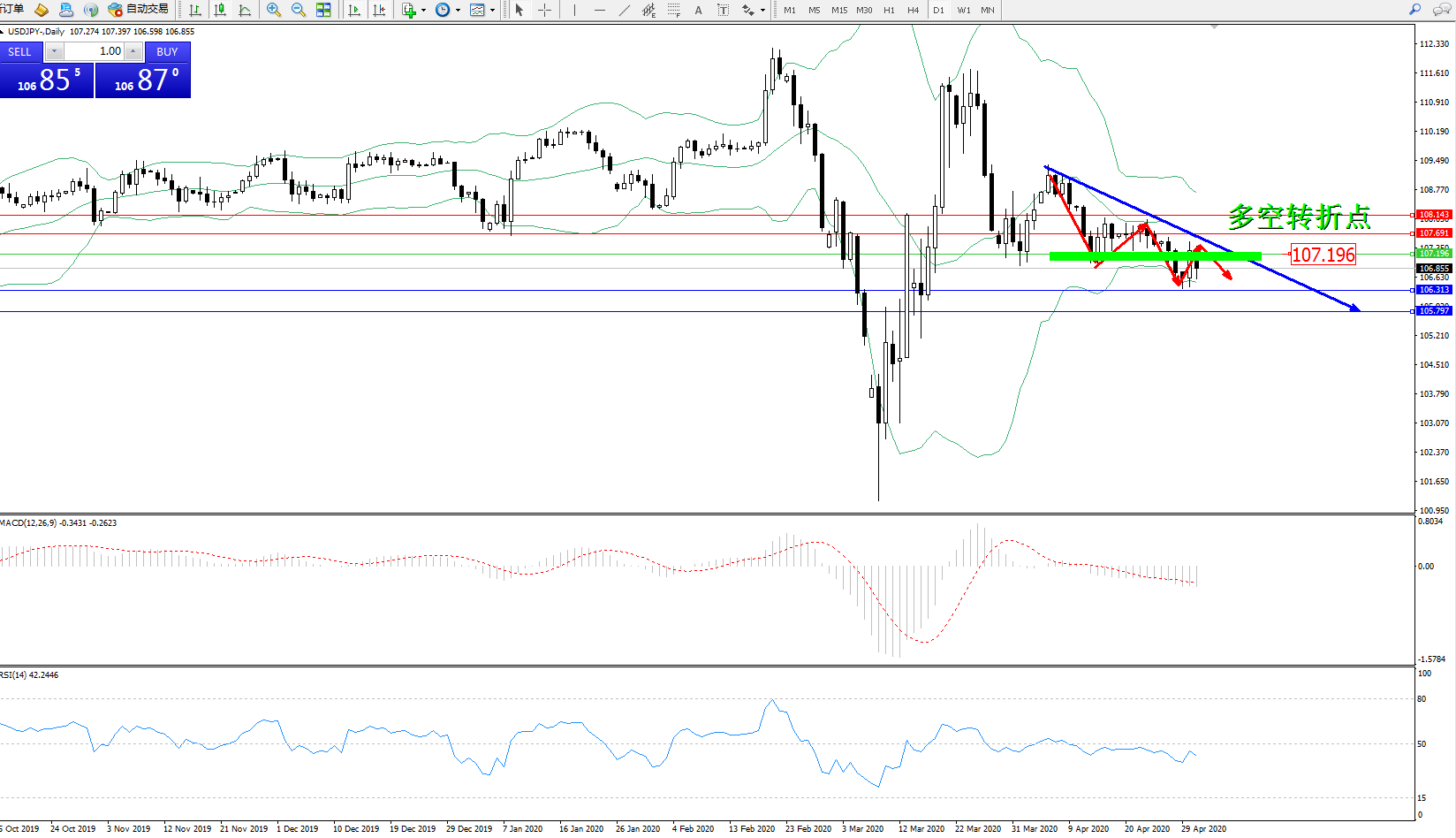 美元兑日元收低0.57%逾106.871,盘中触及六周低位106.354。受到新型冠状病毒疫情及保持社交距离政策的影响,日本4月消费者信心大幅恶化并触及纪录低点。日本央行扩大货币刺激措施,承诺无限量购买债券,以便将借款成本维持在低位。日本政府目前正努力通过支出来让经济摆脱疫情招致的痛苦。日首相五表示,倾向于将日本的紧急状态延长一个月左右。与此同时,专家们表示,在确诊病例进一步下降之前,日本应继续实施限制措施。