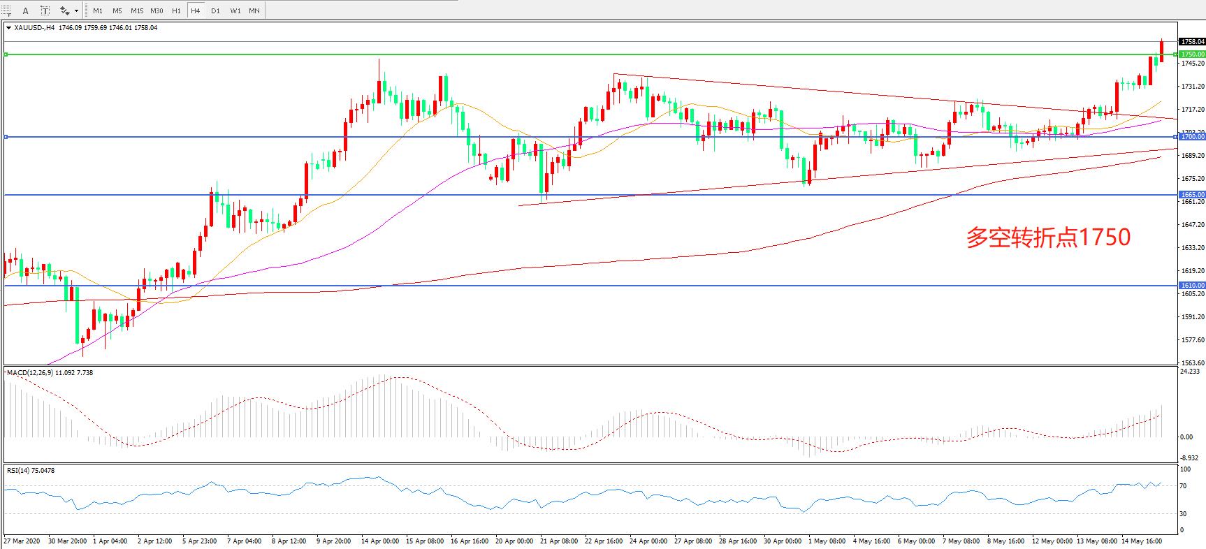 交易策略: 在1750.00之上看涨,目标1785.00 1800.00