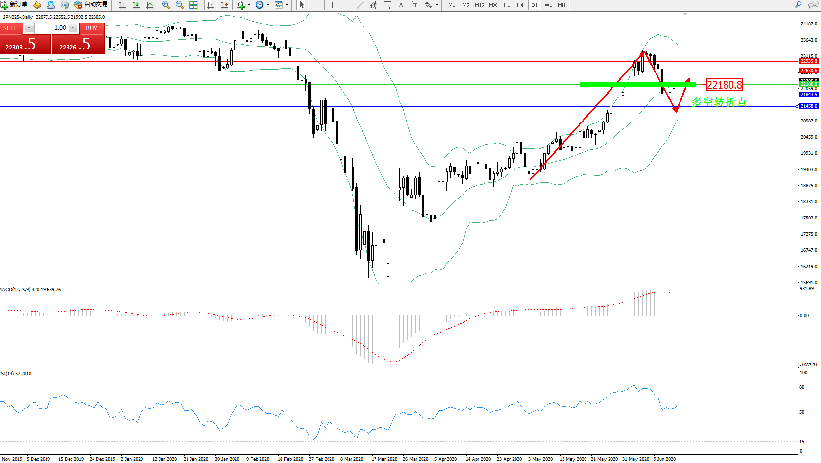 日经225指数6月16日(周二)收盘上涨1031.55点,涨幅4.79%,报22562.50点。日本央行将基准利率维持在-0.1%不变。将10年期国债收益率目标维持在0%附近不变。如果需要,日本央行将毫不犹豫地采取更多行动。特别贷款计划规模约为110万亿日元(此前规模为75万亿日元)。保持资产购买计划。如果需要,将毫不犹豫采取额外的宽松措施。预期短期、长期利率维持在当前水平。日本经济在一段时间内将保持极度严峻形势。下调当前通胀预期。疫情对经济的影响存在很高的不确定性。将提供充足的日元、外汇基金拨备,没有上限。将继续积极购买ETF、日本地产信托基金(J-REITs)。私人消费大幅下降。一段时间内CPI年率可能为负。