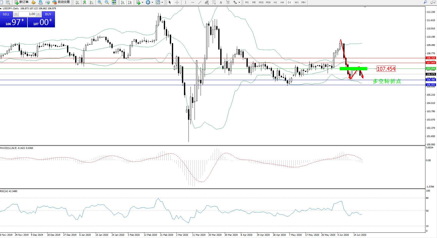 美元兑日元下跌0.04%106.97;对软银约410亿美元的资产出售将加剧股票回购的猜测再度升温,也对美元兑日元构成压力;美元周四创一周最大涨幅,因美国首次申请失业救济人数连续第13周突破100万人,反映了刺激经济面临的挑战之艰巨,对美国疫情再度抬头的担忧也支撑了美元.佛罗里达州单日新冠病毒检测阳性率升至4月以来的新高,对于全球疫情发展前景再起顾虑,并同时看衰经济前景,尤其是在有消息显示美国总统特朗普的1万亿美元基建计划可能在国会遭遇阻力的背景下。