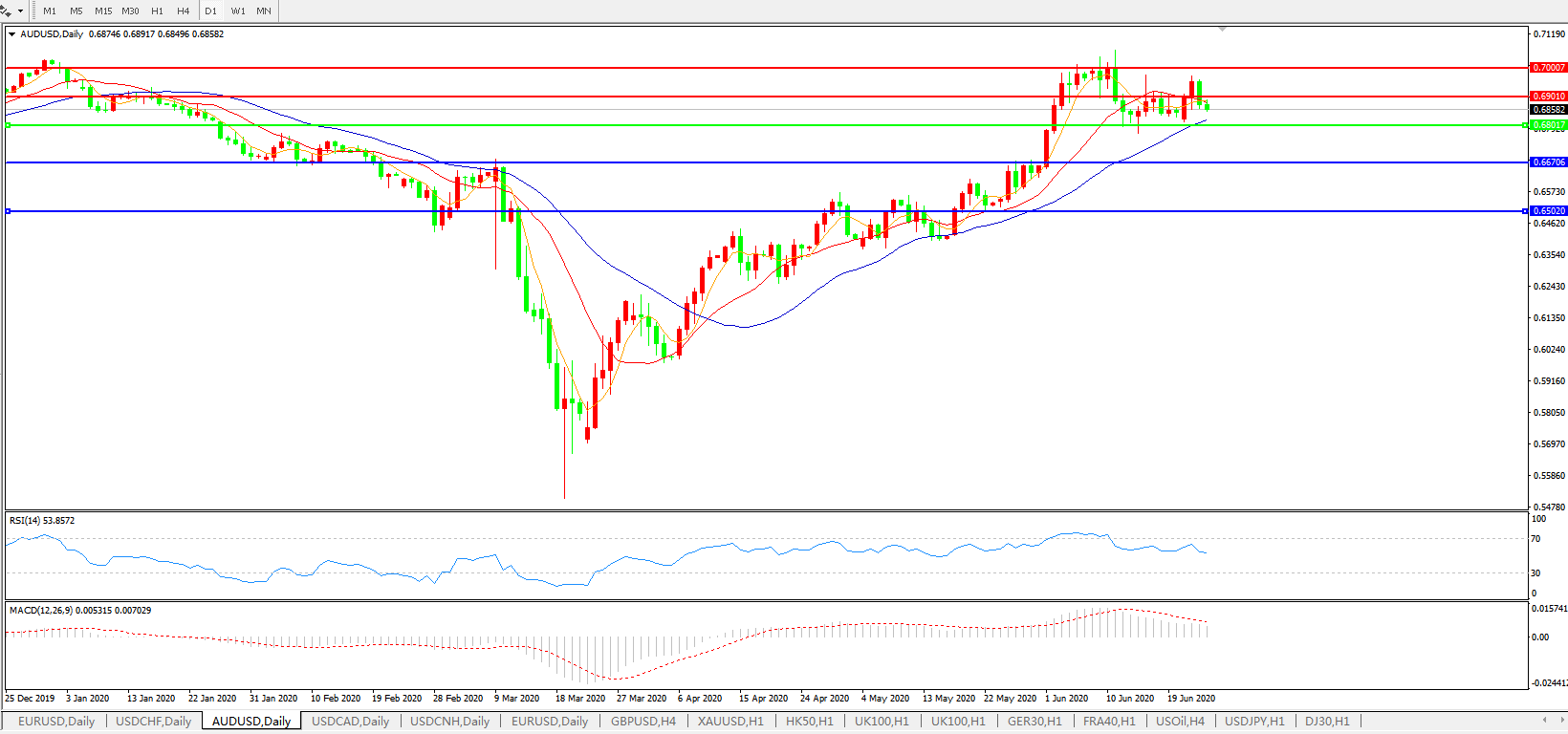 压制位:0.6900 0.7000