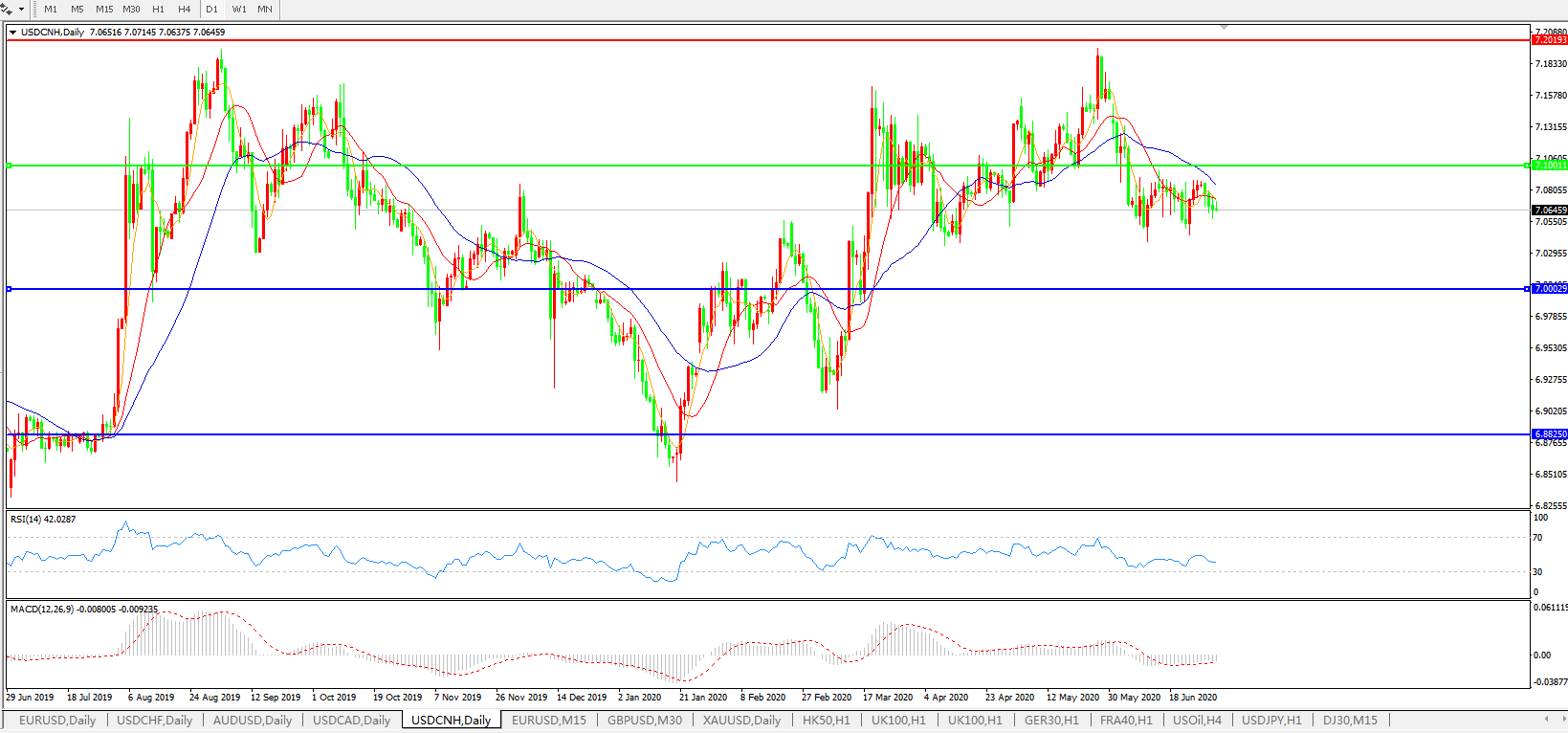 交易策略: 在7.1000之下,看跌,目标价位为7.0000,然后为6.8820。