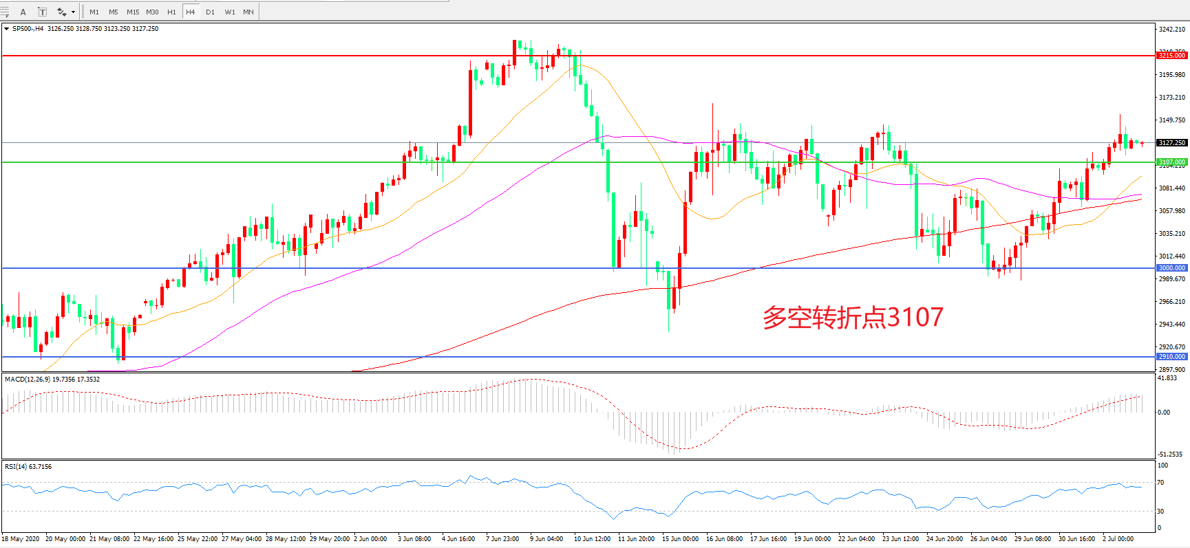多空转折点:3000.00