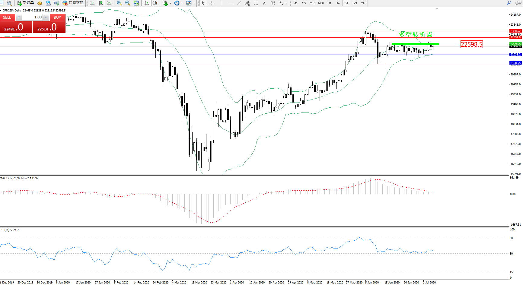 日经225指数7月8日(周三)收盘下跌169.19点,跌幅0.75%,报22445.50点。美国新冠疫情重燃以及部分国家重新实施封锁,投资者对新冠疫情立场愈发谨慎;美联储对经济的评论听起来有些暗淡。目前有理由为之担心,因为还难以判断疫情何时可控。日本京都府7日表示,当地新增9名新冠肺炎确诊病例。京都市政府认为,市内已新增一起因聚会而引发的集体感染情况,正在紧急调查详情。综合日本关西电视台、京都新闻7日消息,新增的9名确诊患者中有5名男性,都曾去过6月30日京都市内一家餐饮店里办的聚会,开怀畅饮。这5人年龄在20-30岁,关系为同事、朋友等。另有一名参加聚会的20多岁男性于6日被确诊感染新冠病毒。这场聚会共8人参加,目前已有6人确诊。京都市政府认为,聚会已引发新的集体感染。