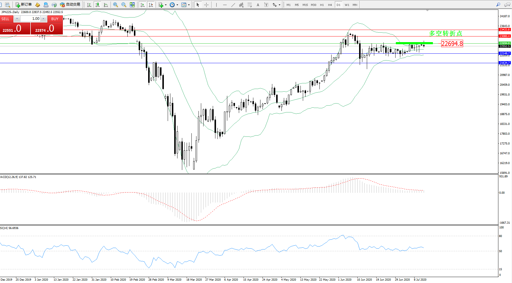 日经225指数7月13日(周一)收盘上涨468.69点,涨幅2.10%,报22759.50点。中国股市表现强劲,令市场风险偏好情绪不断回暖。亚洲股市表现强劲,本周市场主要焦点将是日本央行行长黑田东彦召开的新闻发布会,6月16日日本央行会议上,黑田东彦表示超长期日本国债收益率与其他国家相比并不高,被视为暗示日本央行认为长期债券收益率有上升空间,30年期日本国债收益率从7月初的0.53%升至0.65%,然后出现整理,但仍高于这次会议之前的水平;日本债券收益率曲线已经更为陡峭,但如果黑田东彦淡化相关评论,日本债券收益率曲线已可能进一步趋于平坦.