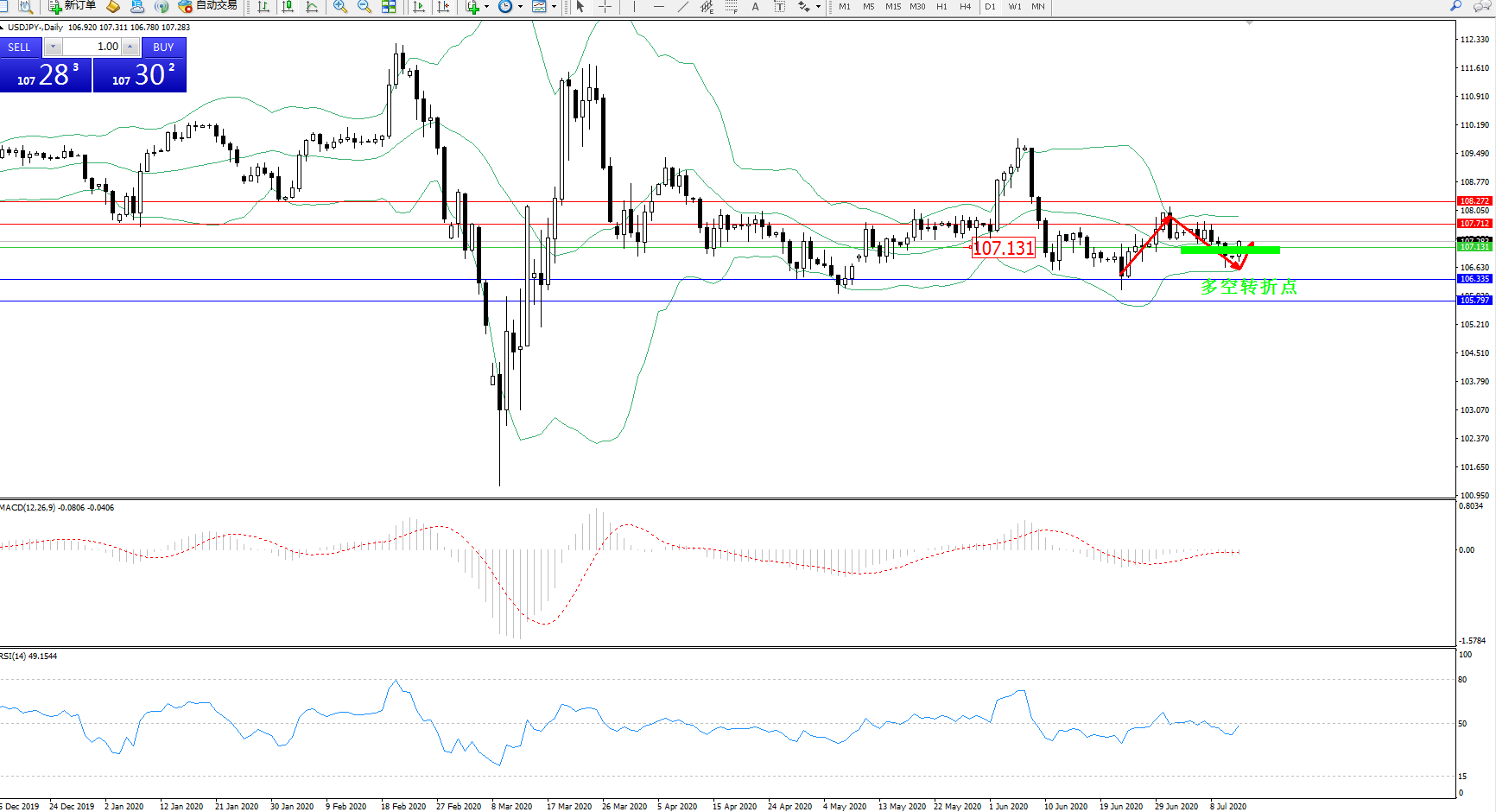 美元兑日元上涨0.34%至107.29,盘中低点106.79,野村证券讨论了对本周日本央行和欧洲央行7月利率决议的预期,日元走强的空间有限,预计美元兑日元将逐渐升向110及以上点位,日本央行和欧洲央行料均维持观望立场,以评估之前宽松措施的影响;在7月17-18日的欧盟峰会上,欧盟复苏基金的讨论对欧元兑日元走势的影响将更为关键,如果达成协议那将是一个惊喜,尽管协议更有可能被推迟到7月底,不过只要有关该基金的讨论继续进行,欧元区外围国家的政府债券和欧元兑日元仍可能获得支撑。此外,三菱东京日联银行表示,日本央行7月决议料维稳,关注黑田新闻发布会。受美元后市料将持续承压,全球资金配置方向出现转移影响,美元兑日元将打开进一步下行空间,未来数周间或进一步下探至106.20这一支撑位水平。