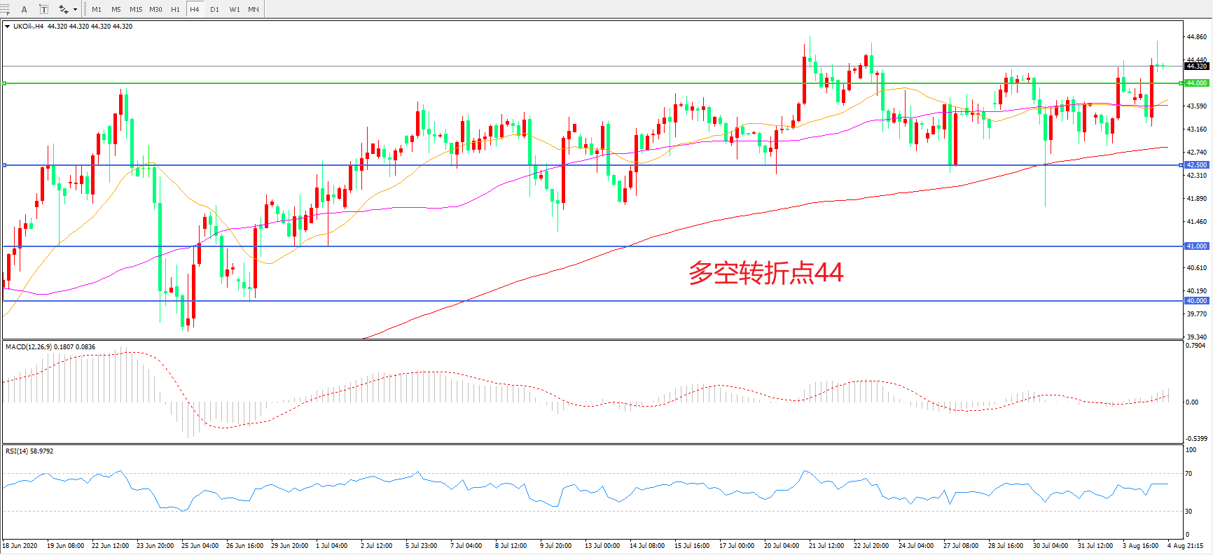 交易策略: 在44.00之上看涨,目标46.00 49.00