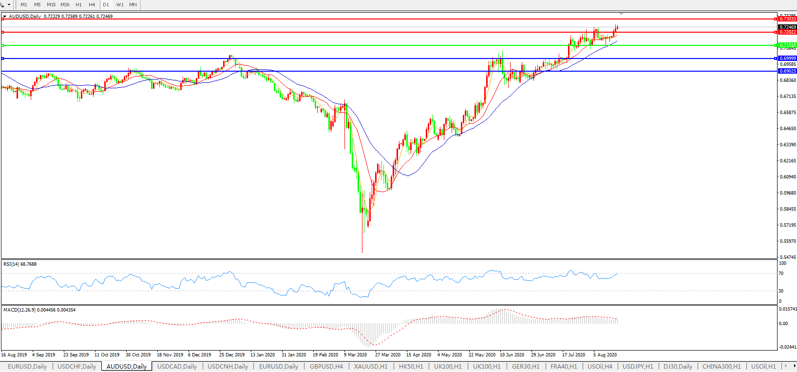 交易策略:0.7100上方看涨,目标0.7200、0.7300