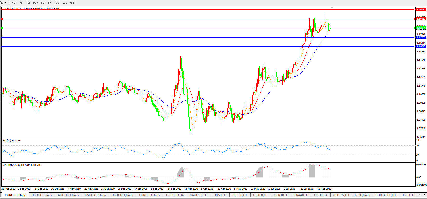 交易策略:1.1800下方看跌,目标1.1700、1.1600