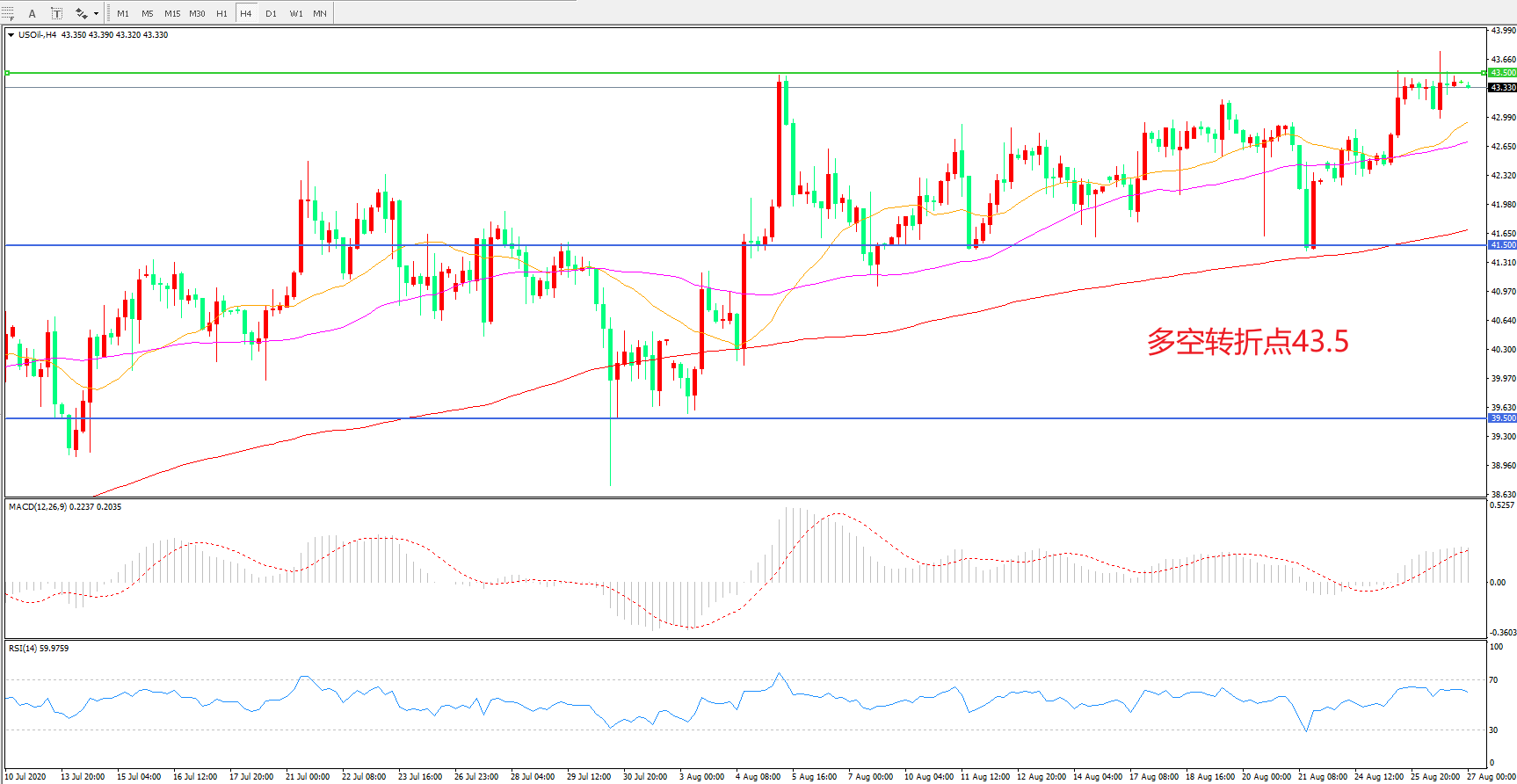 多空转折点:43.50