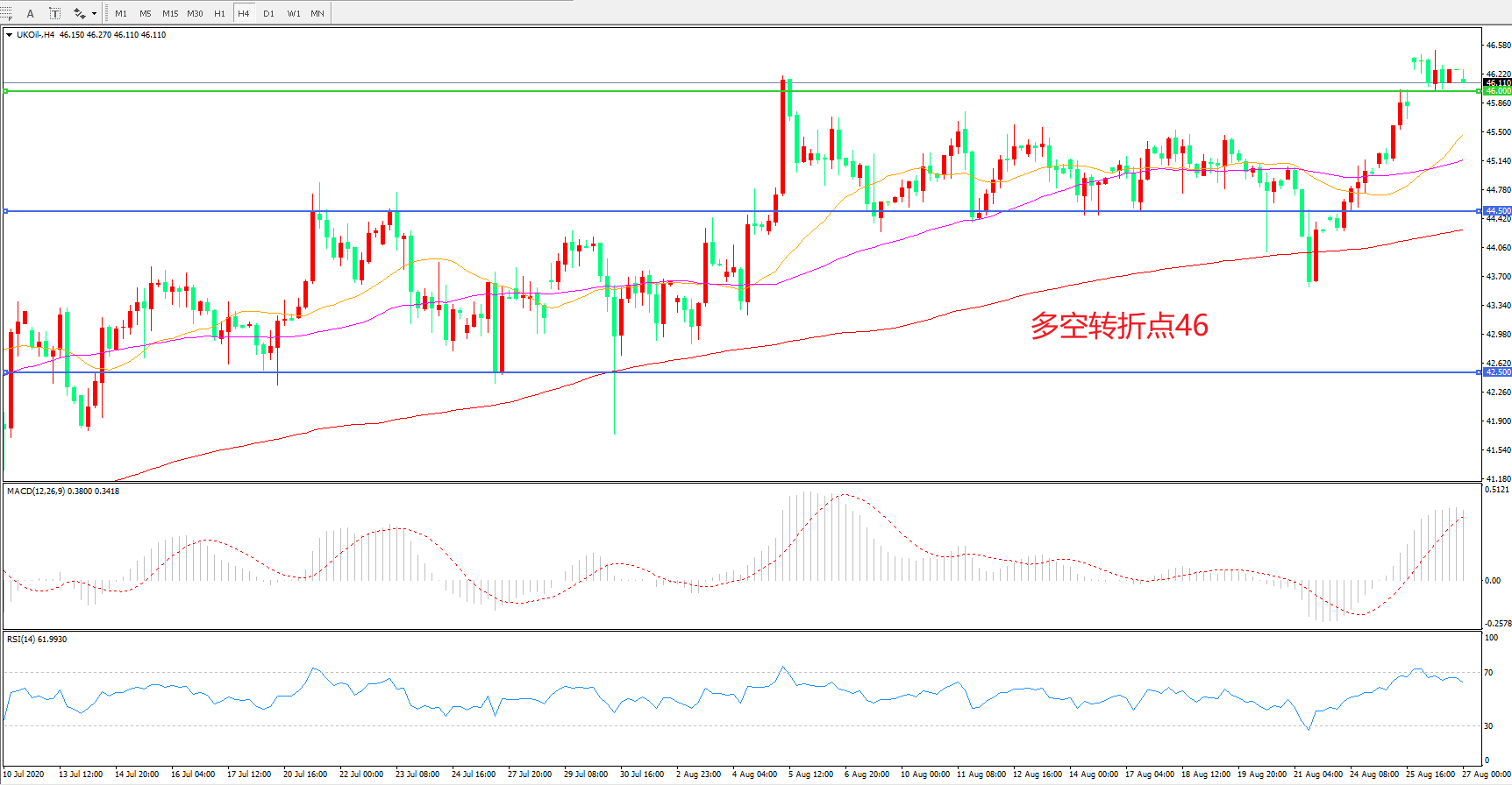 交易策略: 在46.00之上看涨,目标48.00 50.00