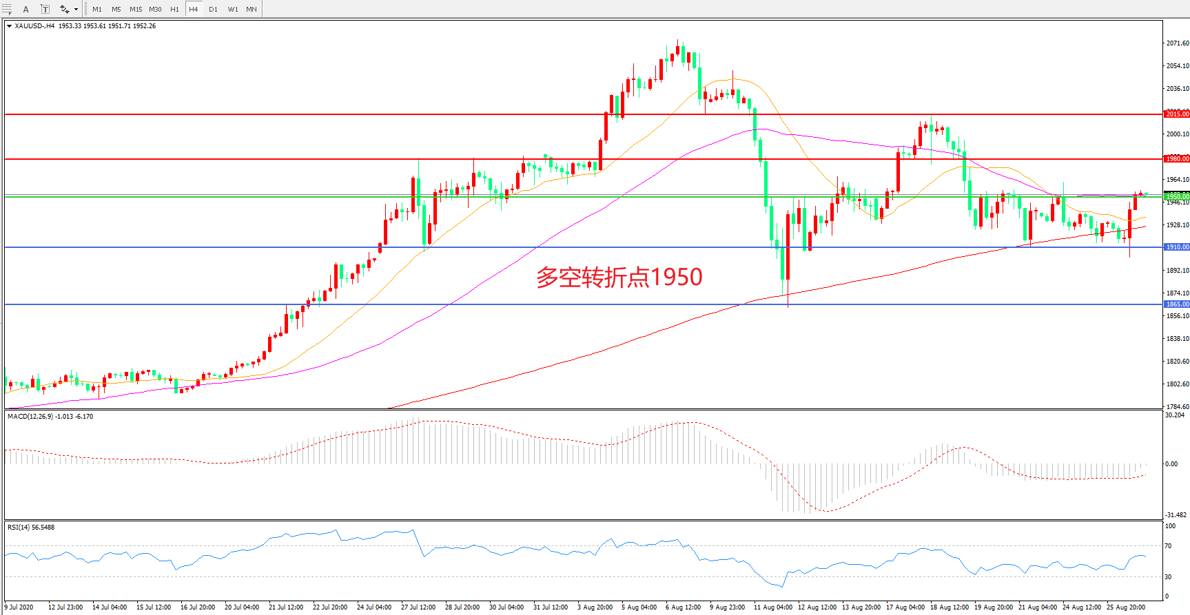 交易策略:在1950.00之下看跌,目标1910.00 1865.00