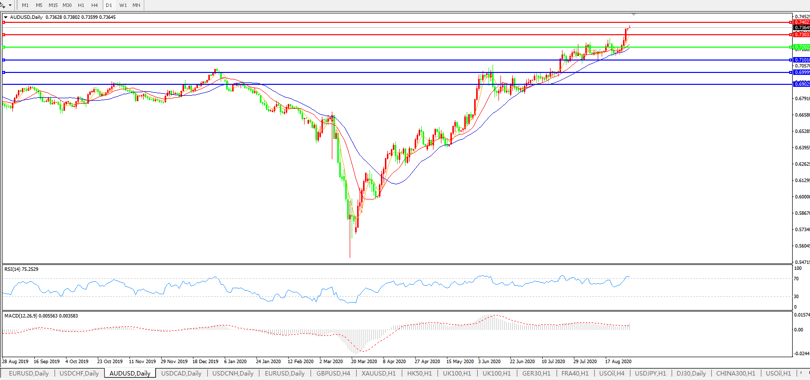 压制位:0.7300 0.7400