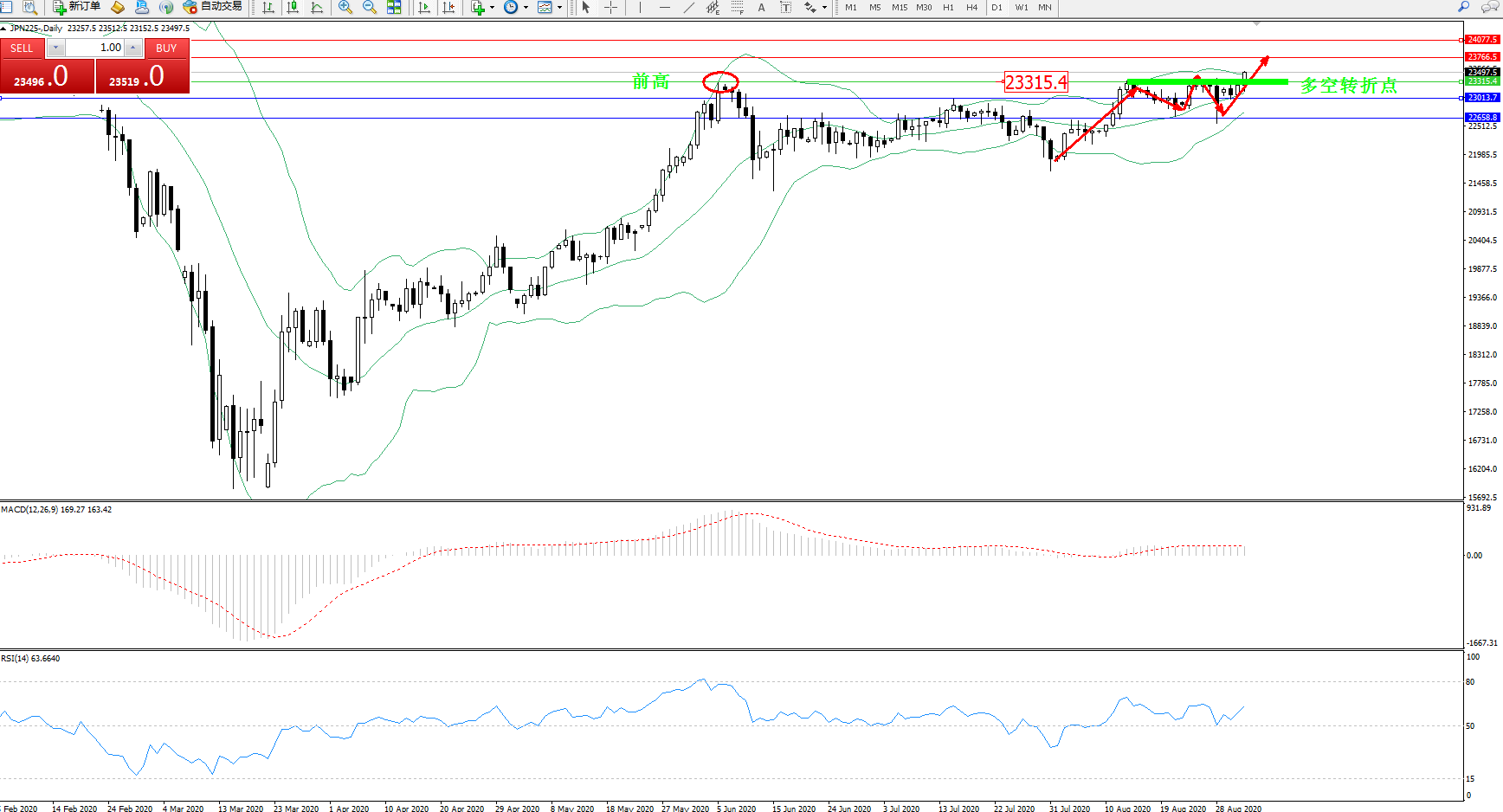 日经225指数9月2日(周三)收盘上涨104.43点,涨幅0.45%,报23242.50点。日本自民党将于9月14日(周一)北京时间13点举行新一任总裁选举,受到市场关注,不确定性较大,日本央行的若田部昌澄说央行在需要时将毫不犹豫地宽松政策。日本央行副行长若田部昌澄周三在电话会议上向日本佐贺市的当地商业领袖表示,疫情大流行对经济和通货膨胀之影响的不确定性仍然很高,在大流行期间,日本央行需要最大警醒;必须注意通胀减弱的风险,中央银行必须确保流动性,关于货币政策的讨论应继续。日本央行将继续与政府合作,财政和货币政策应在危机中协同工作,当自然利率下降时,需要注意通缩压力的上升又不会压低实际利率。