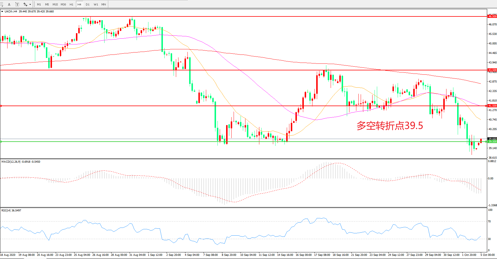 周一(10月5日),白宫医生称,特朗普状况“持续改善”,很快将回白宫接受后续治疗,市场对大选日之前政治不确定性的担忧大幅缓解,风险情绪也较上周大幅回暖,引发油价报复性反弹,布伦特原油一度暴涨超过7%,最终收报41.51美元/桶。