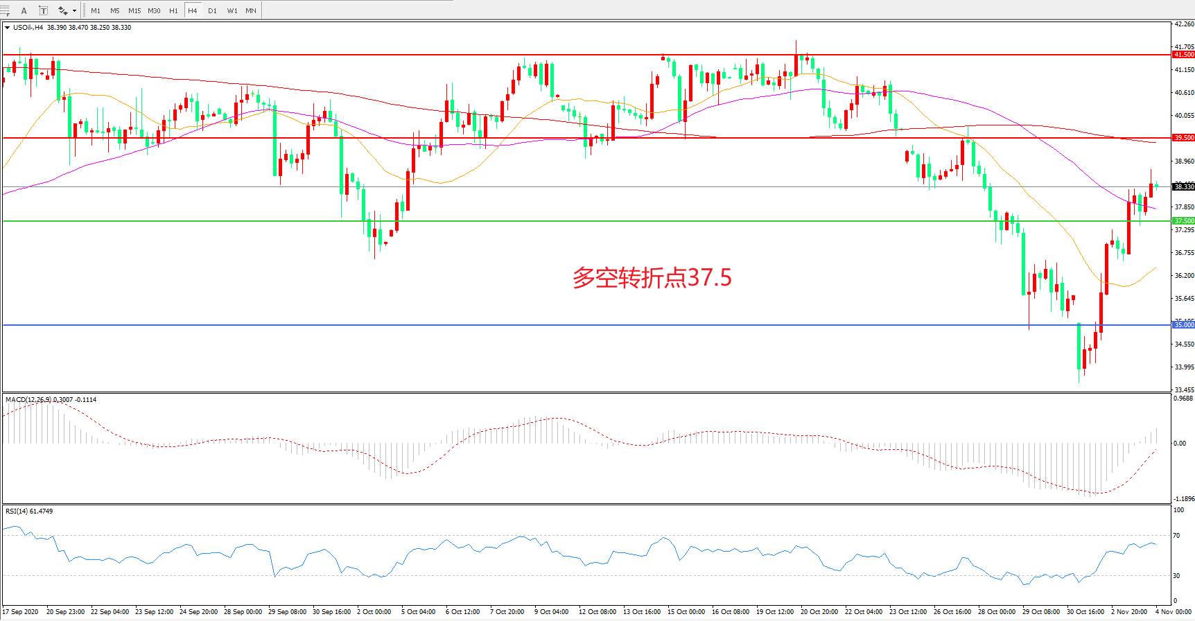 交易策略: 在37.50之上看涨,目标39.50         41.50