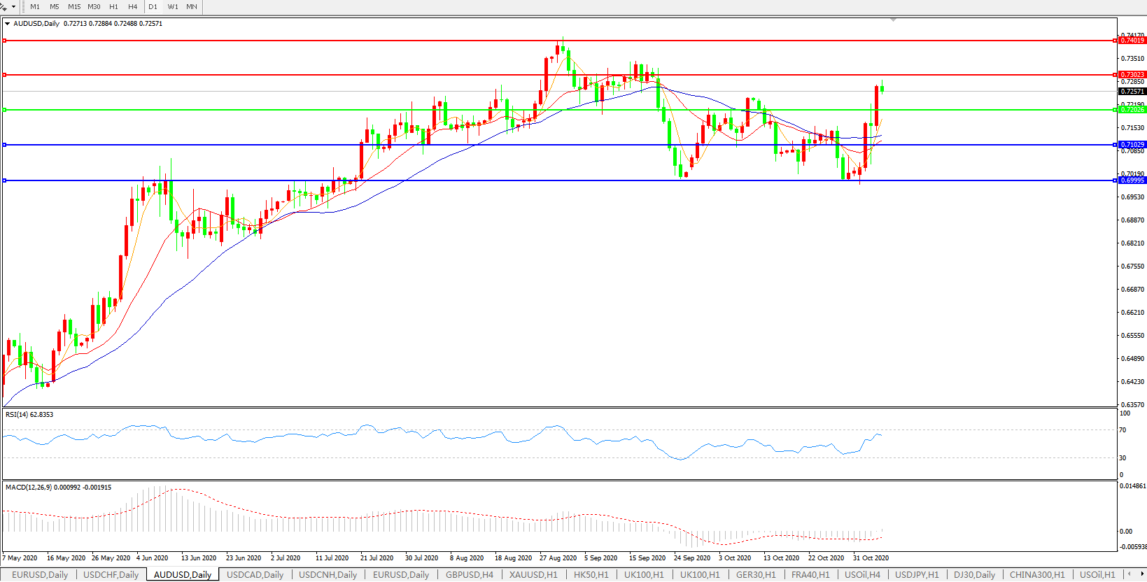 交易策略:0.7200上方看涨,目标0.7300、0.7400