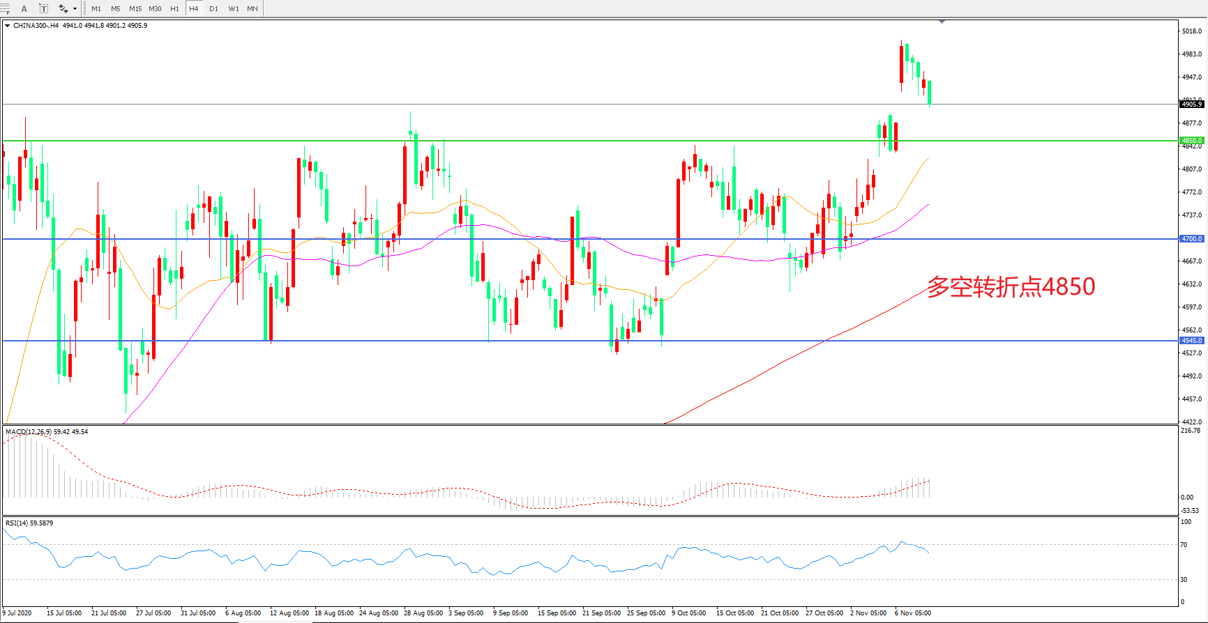 交易策略:在4850.00之上看涨,目标5000.00       5150.00