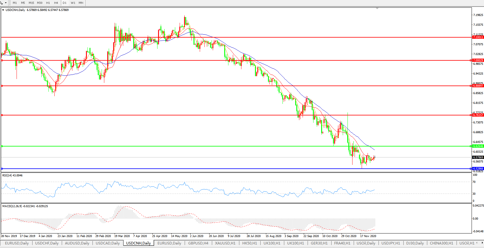 交易策略: 在6.6265之下,看跌,目标价位为6.5286,然后为6.3500。