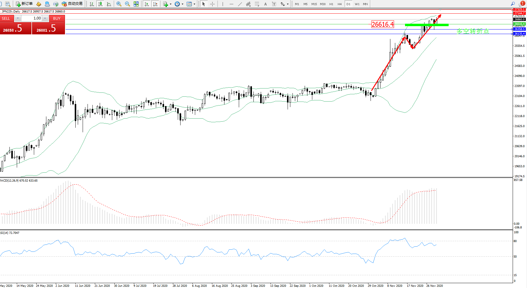 日经225指数12月1日(周二)收盘上涨355.88点,涨幅1.35%,报26789.50点。由于冠状病毒打击了民间部门的需求,日本企业在7月至9月连续第二个季度削减了工厂和设备方面的支出,这使决策者继续承受压力,需要部署大规模刺激措施应对大流行。疲弱的资本支出可能会使日本政府感到担忧,该国政府在指望民间需求帮助日本这个全球第三大经济体摆脱这场公共健康危机导致的战后最严重衰退。虽然资本支出收缩说明经济环境充满挑战,不过一些分析师表示,资本支出数据暗示将于12月7日发布的第三季GDP数据将会上修,此前公布的环比年率初值为增长21.4%。 其他数据则显示日本就业市场喜忧参半。10月失业率从前月的3.0%升至3.1%,求才求职比一年半来首次上升,从前月的1.03升至1.04。
