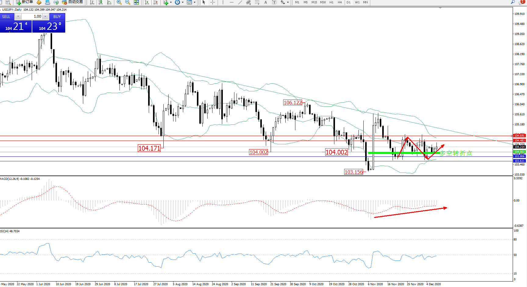 交易策略:104.002上方看涨,目标104.483、104.691