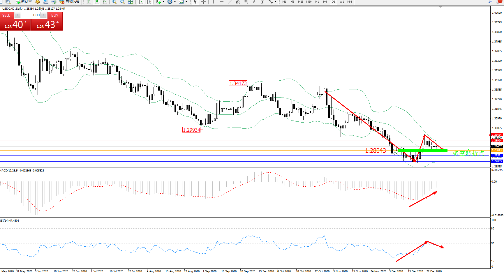 美元加元USDCAD——日K线图显示: