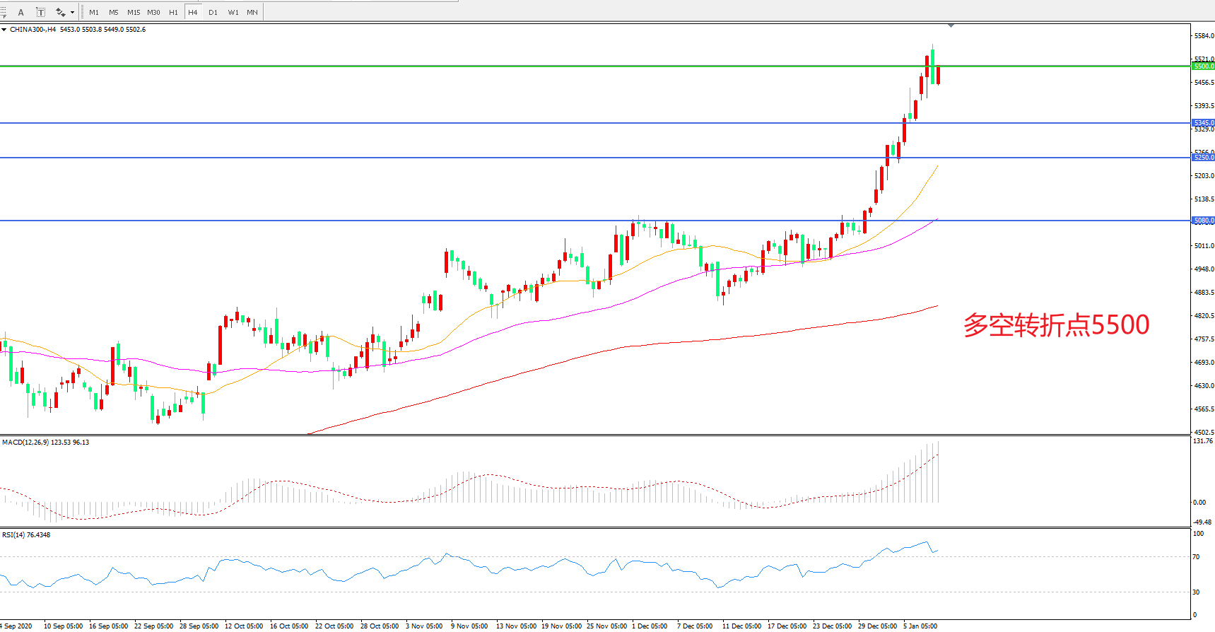 交易策略: 在5500.00之上看涨,目标5630.00       5750.00