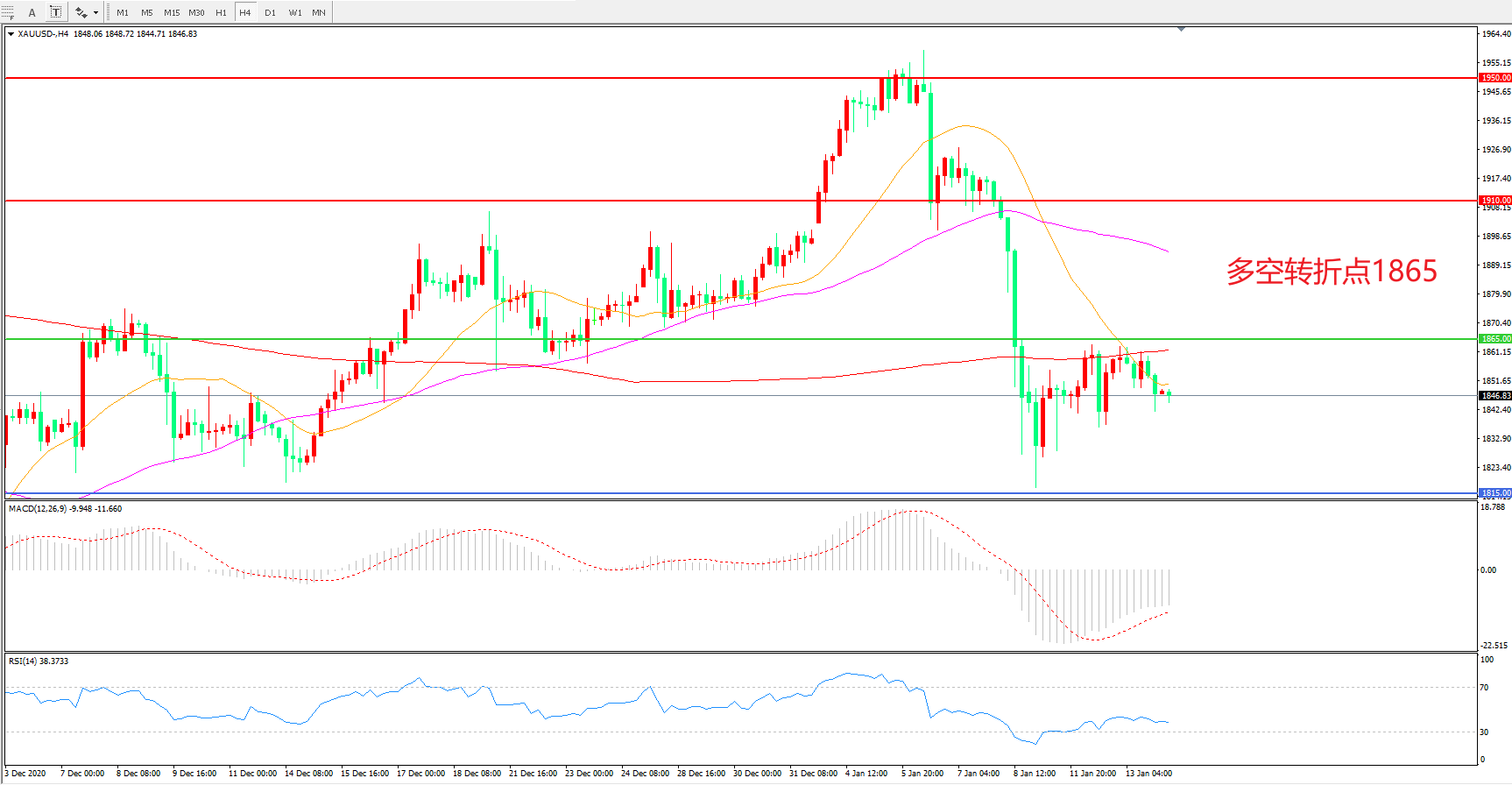 交易策略:在1865.00之下看跌,目标1815.00 1765.00