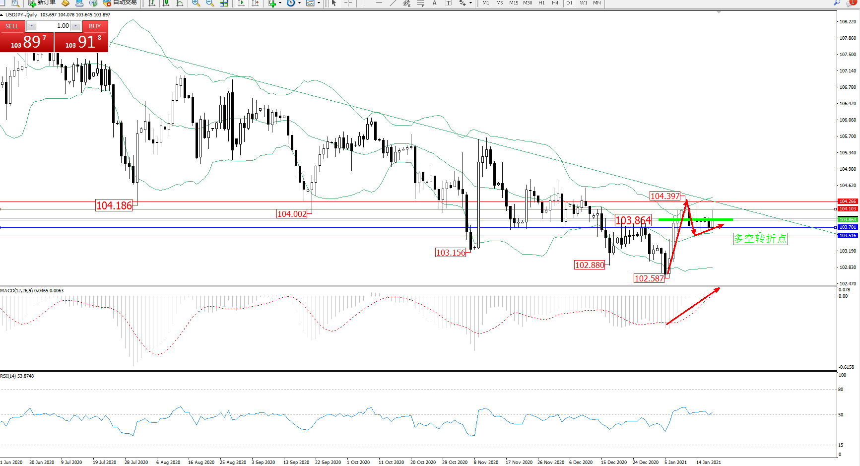 多空转折点:103.864