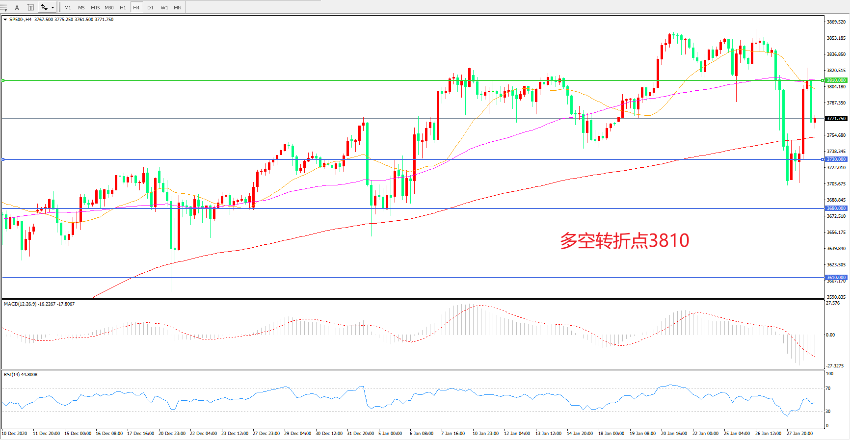周四(1月28日),在创下三个月最大跌幅后,连日下跌的三大美国股指终于反弹,在Robinhood等平台限制交易后,受美国散户热捧的游戏驿站等近期飙涨“妖股”集体大跌。标普500冲高回落,收报3767.50点。四季度GDP不及预期,投机性交易风起云涌,美股未来的走势仍然难以预测。