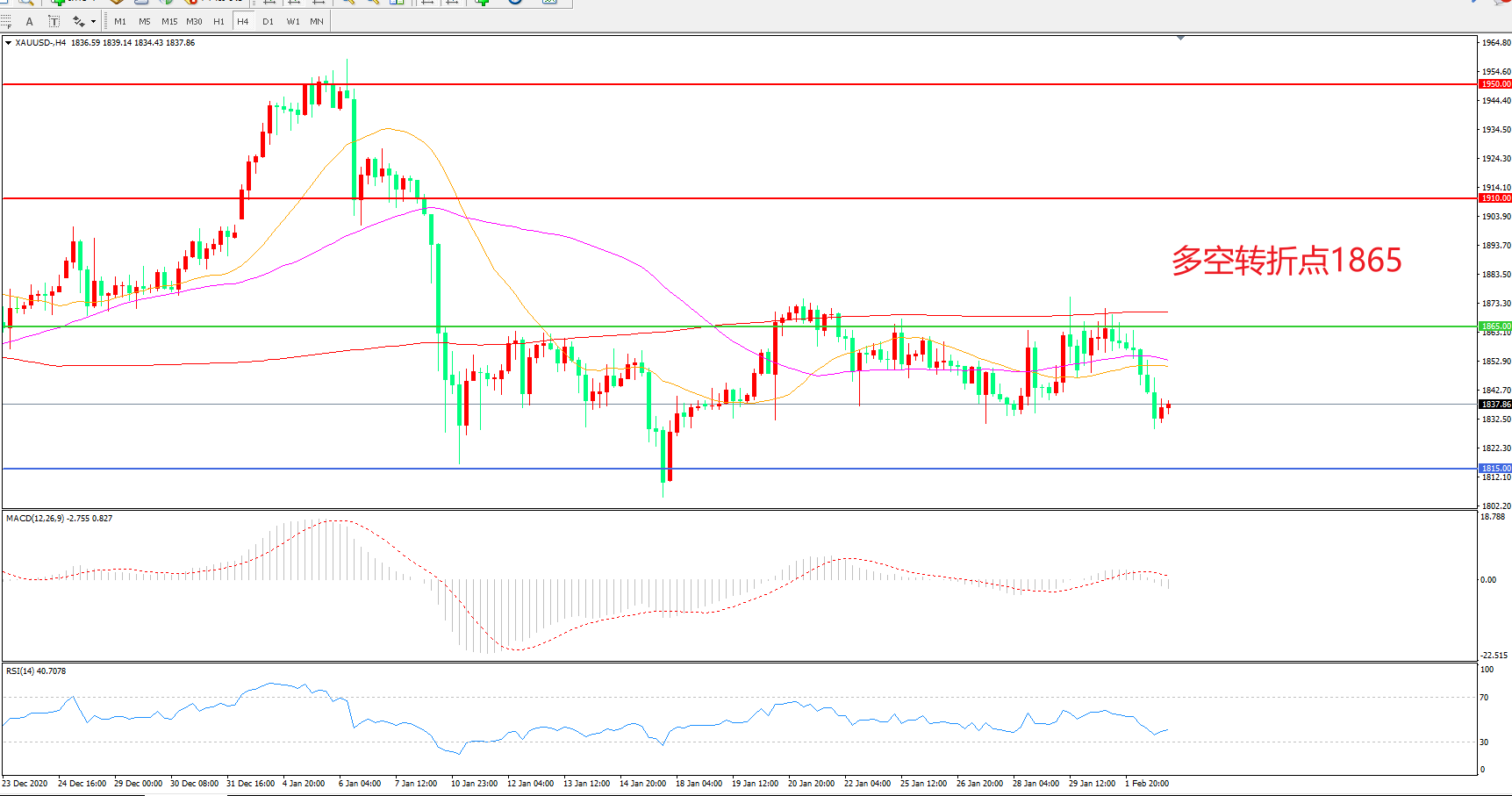 交易策略:在1865.00之下看跌,目标1815.00    1765.00
