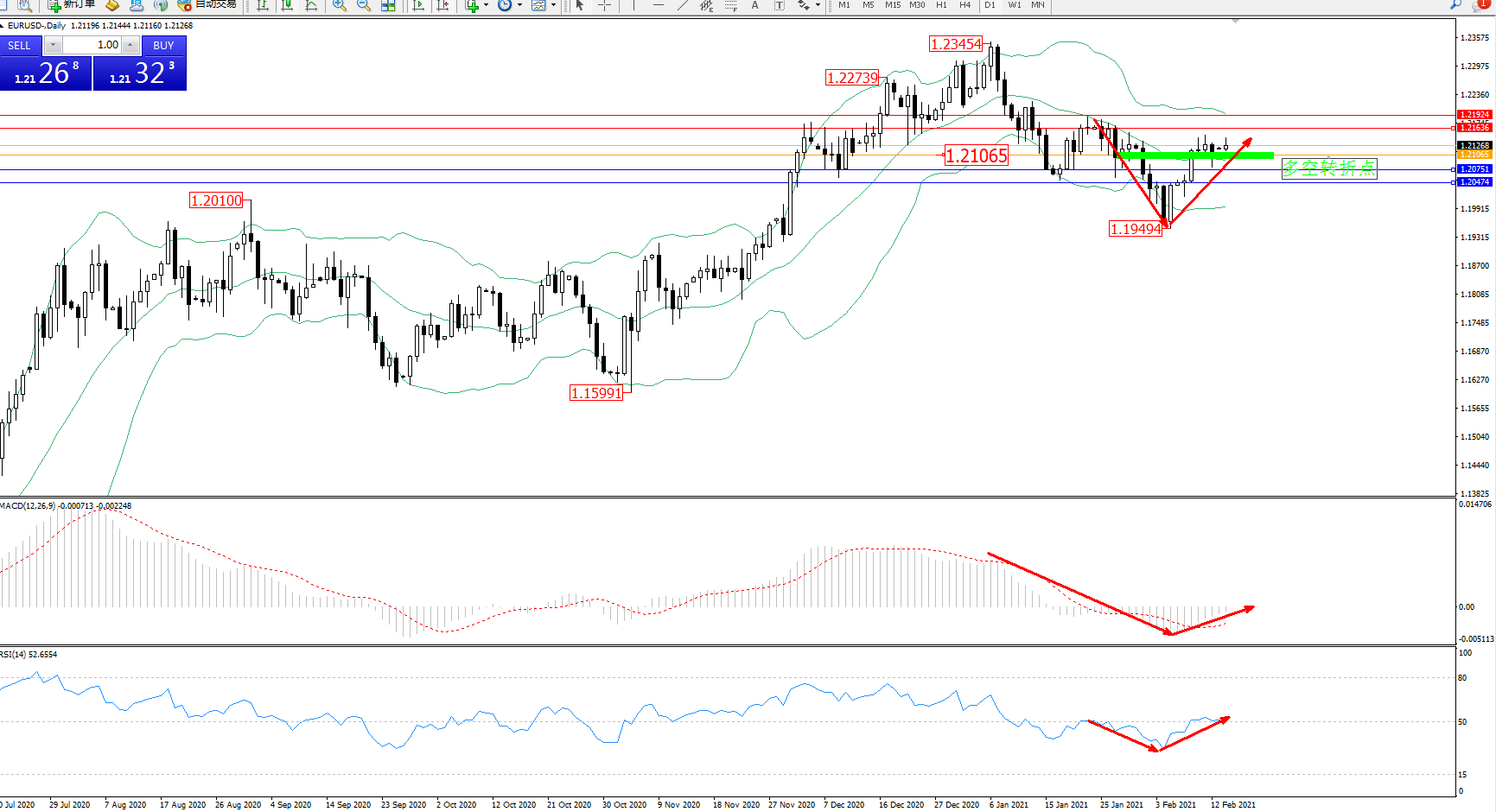 交易策略:1.21065上方看涨,目标1.21636、1.21924