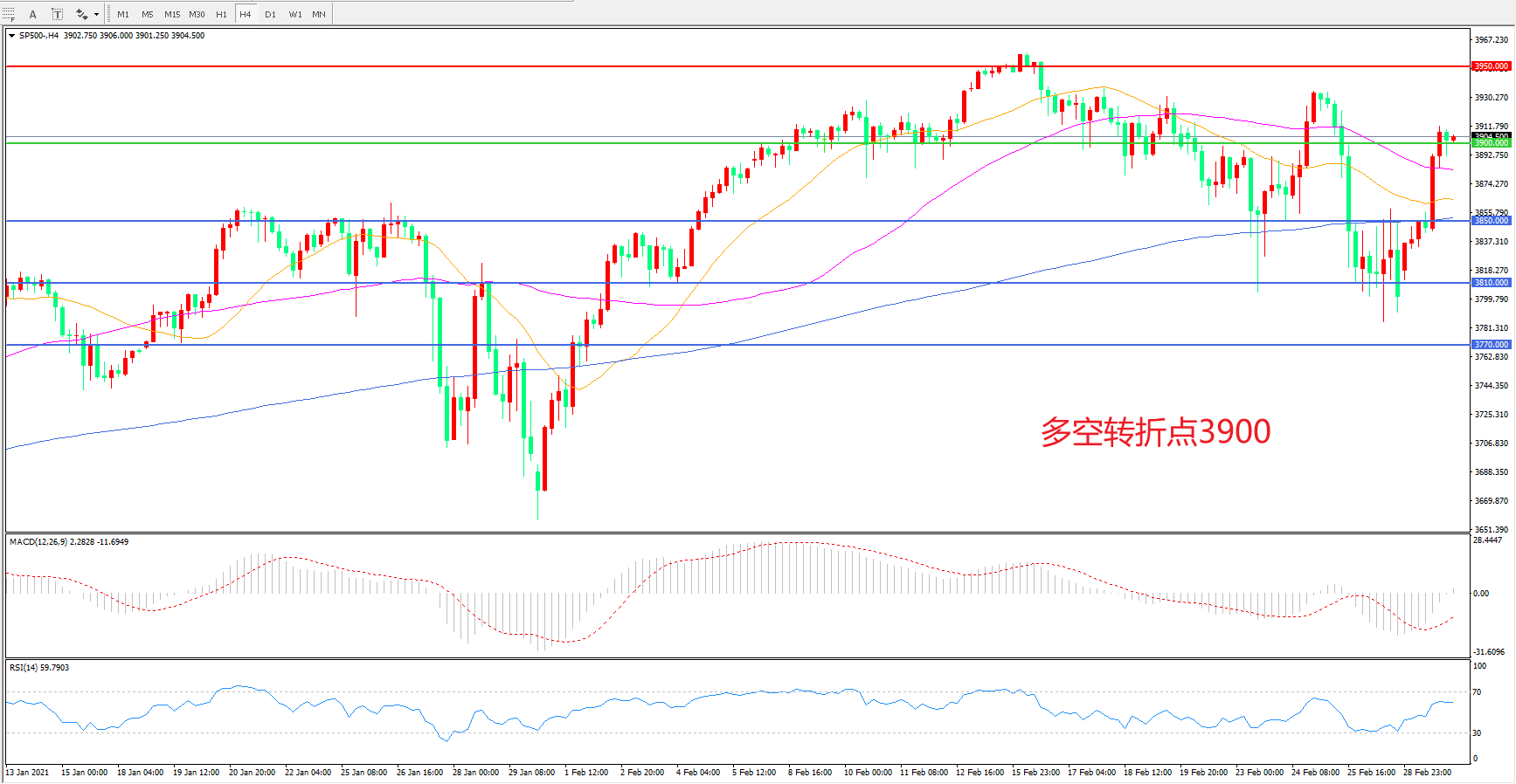多空转折点:3900.00