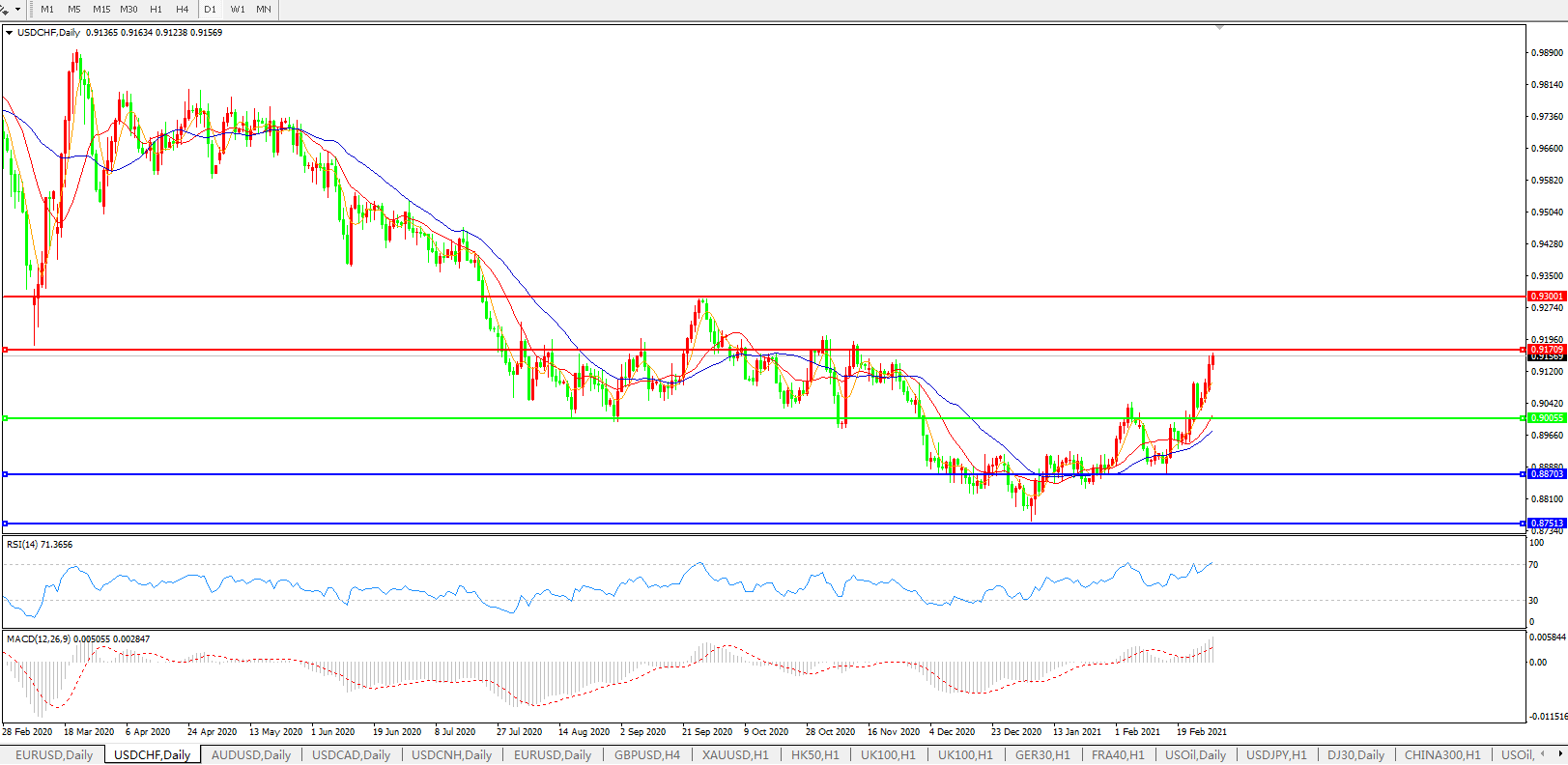 美元表现或更有弹性,美元兑瑞郎涨势如虹