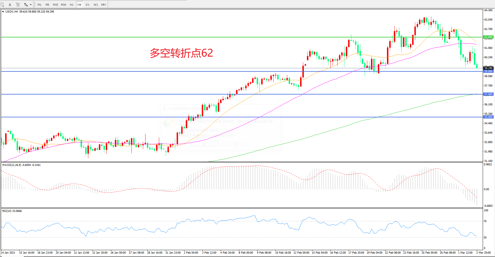交易策略:在62.00之下看跌,目标59.00 57.00