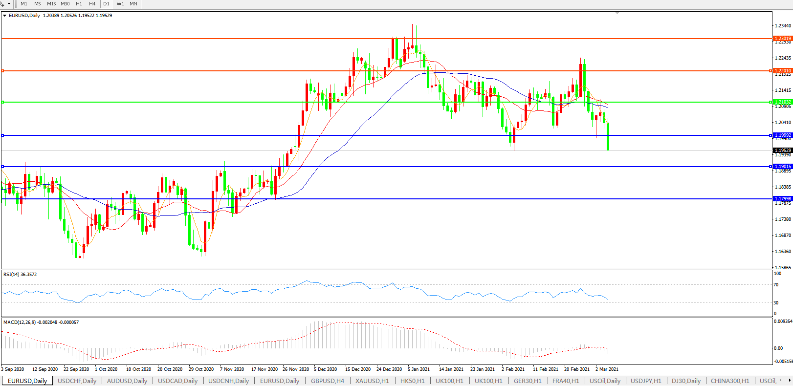 交易策略:1.2100下方看跌,目标1.2000、1.1900