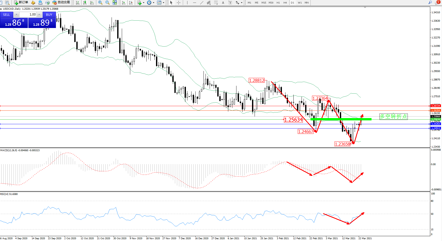 美元兑加元持续震荡上扬至1.25868附近震荡,随着全球经济的进一步趋于复苏,油价在需求端拉动下上行仍将是大势所趋,因而与油价高度关联的产油国货币也将继续是汇市的领跑者。同时,出口的强势复苏会令相应经济体的央行更早进入加息周期,当前相对美元做多挪威克郎和加元;挪威央行将领先所有其他发达经济体央行,带头于2021年四季度就开始加息,这意味着挪威克郎汇价前景将持续看多。与此同时,加拿大央行也会此后在今年4月份就开始缩减QE规模,并在2023年初开始加息,这都比美联储要领先一步,于是,美元兑加元上周触及的三年低点1.2365,也并非已经是历史性大底。