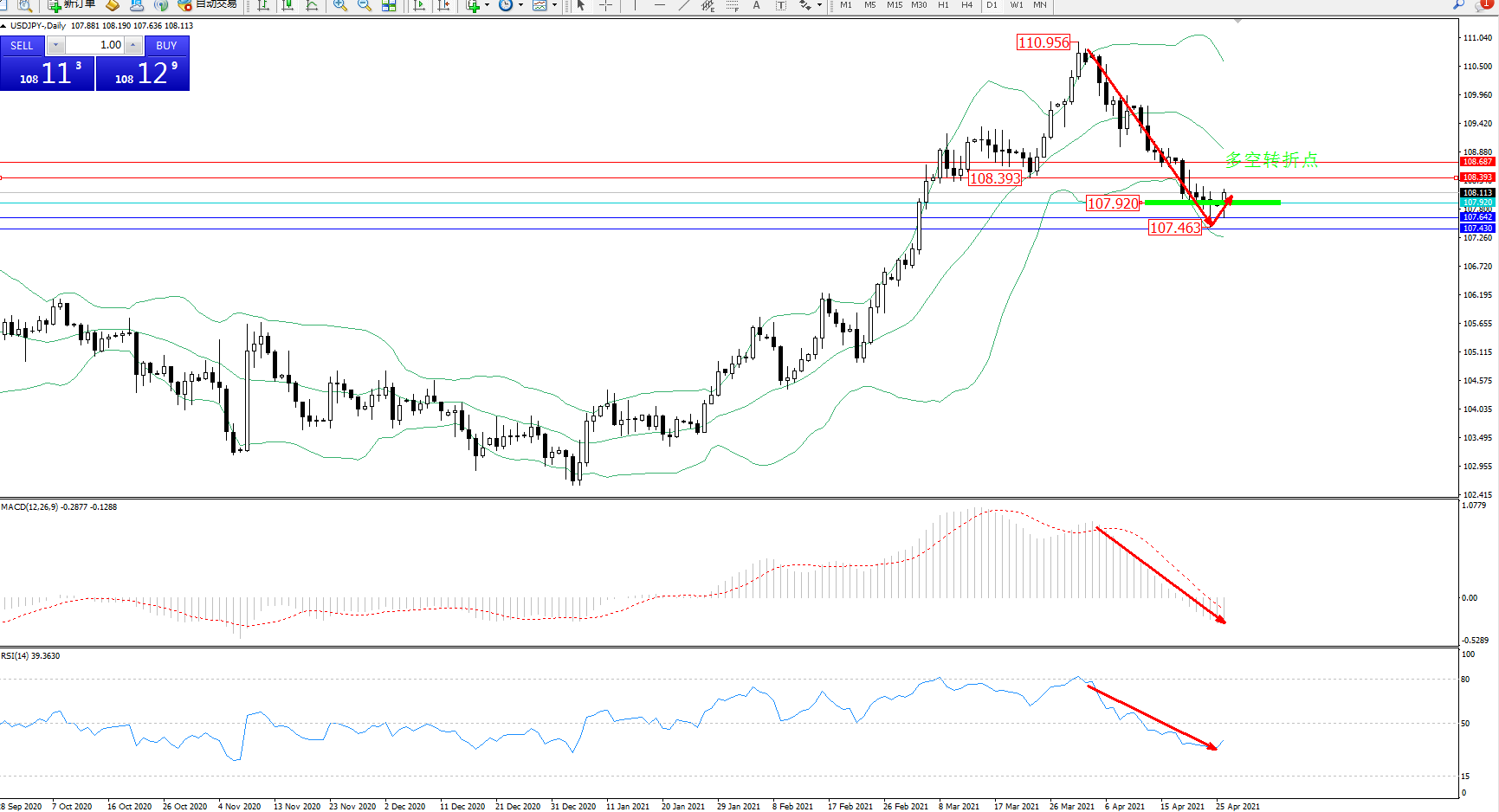 多空转折点:107.920