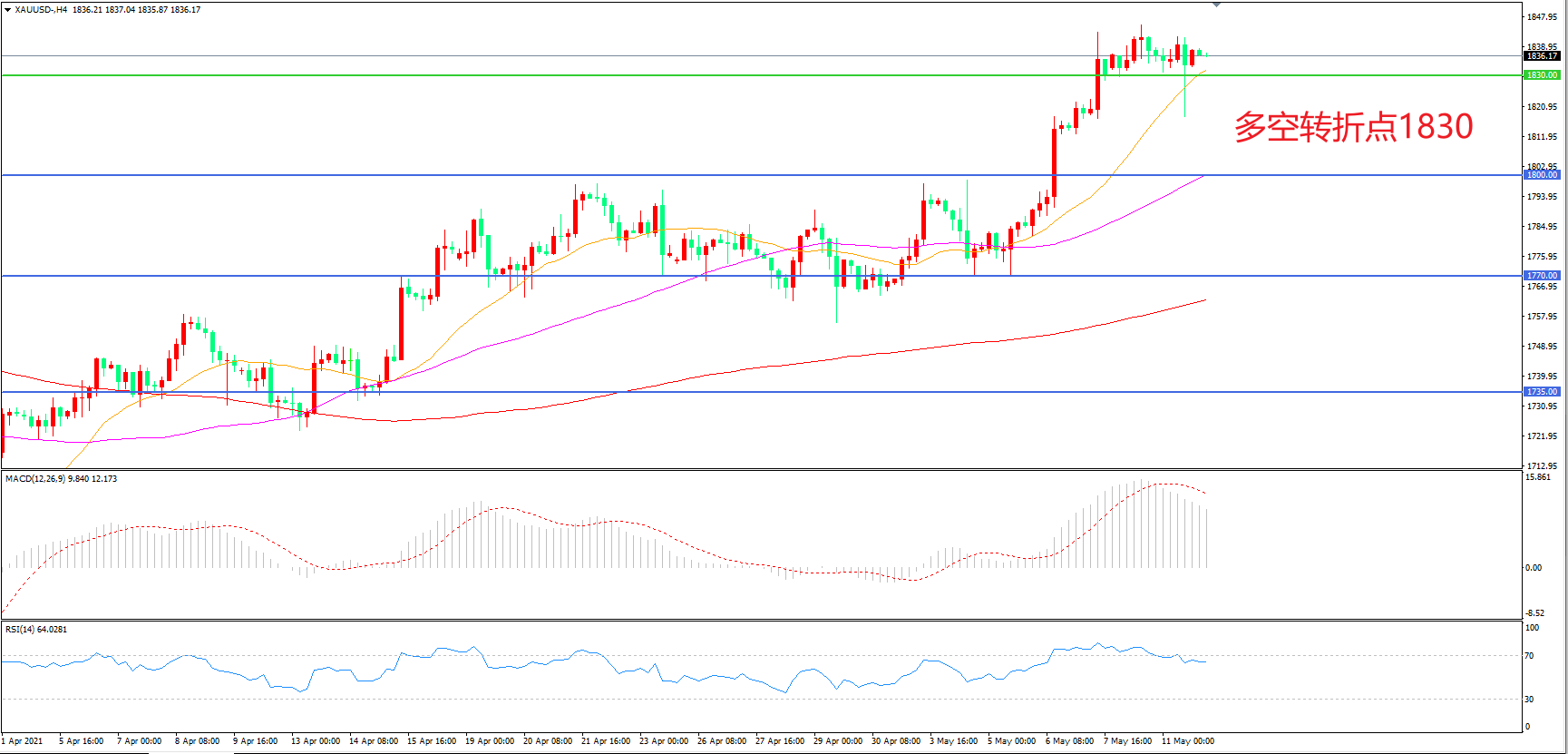 多空转折点:1830.00
