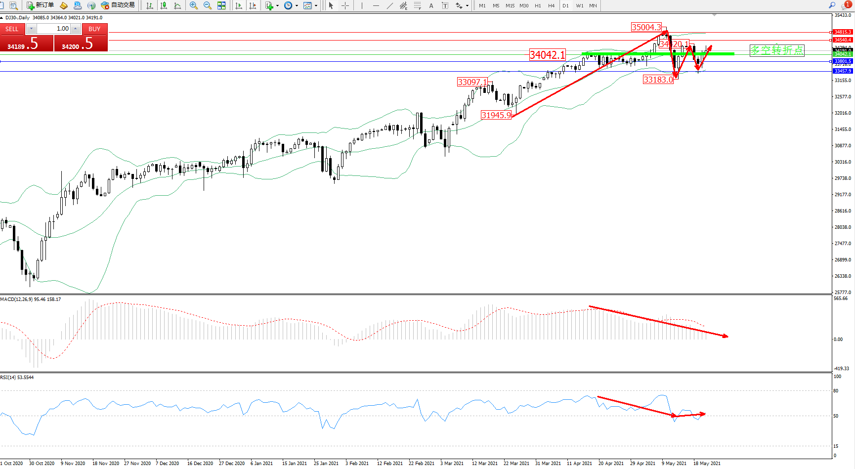 技术点评:多头动力延续布林带指标通道中上轨区间持续震荡上扬,高位抵达35004位置后遇阻回撤,多次纠结于中轨区间维持震荡弱势整理中,关注中轨附近节点,布林带指标呈收口平移走势良好,关注中轨附近节点,MACD指标处于多头区域高位维持震荡向下移动,RSI指标处于50均衡线附近不断震荡下移中;