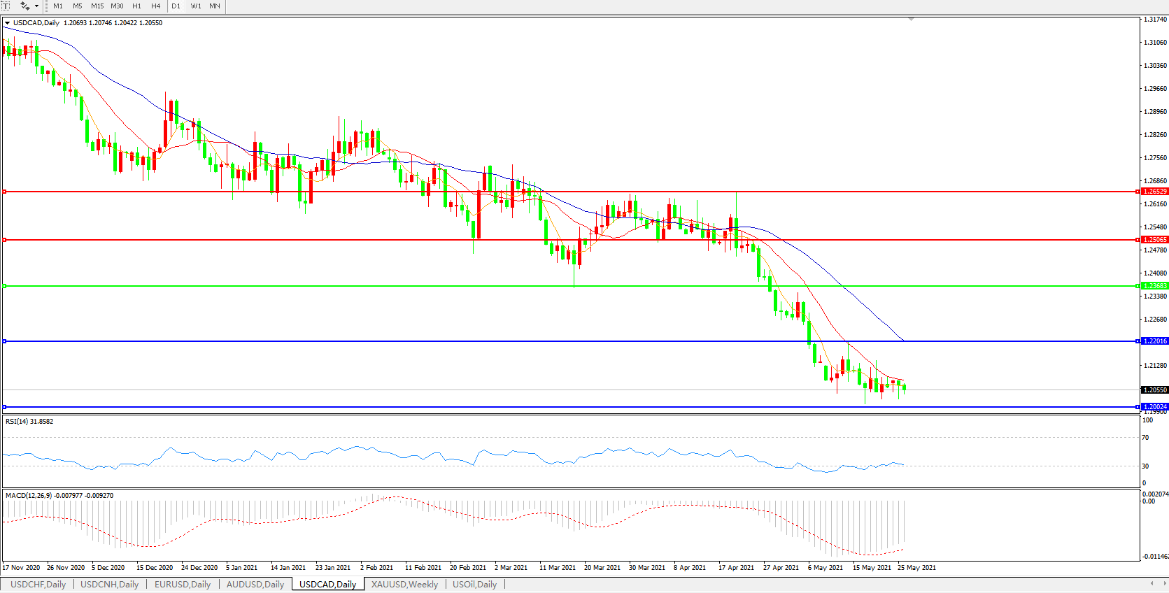 技术面简析:日线图均线呈有序空头排列,汇价低位弱势整理,MACD运行于0轴下方但量能开始缩量,RSI有走升迹象,预计短期汇价大概率将低位整理。