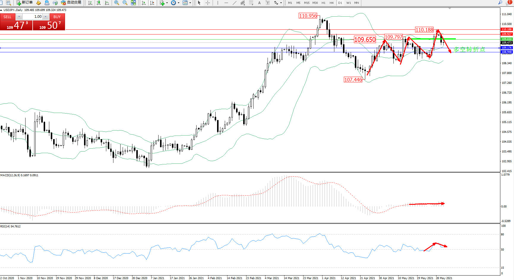 美元兑日圆高位109.473附近震荡,参加东京奥运会的日本选手、教练以及可能密切接触选手的工作人员等约1600人,从6月1日开始接种新冠疫苗,接种地点在日本国家训练中心。1日当天,6个奥运会竞技团体的选手和选手团本部的工作人员接种了新冠疫苗,共计约200人。以残奥会选手为对象的疫苗接种工作,计划将于6月中旬开始。日本方面计划在6月20日左右可以完成日本代表团全体成员的疫苗接种工作。日本政府当地时间6月1日表示,由于变异新冠病毒的感染风险上升,日本将加强对来自美国部分地区以及阿富汗、越南、马来西亚和泰国等地的游客的检疫入境管理措施。大部分相关措施将于6月4日生效,包括对来自纽约、加利福尼亚等美国13个州的旅客实施为期三天的指定地点隔离。
