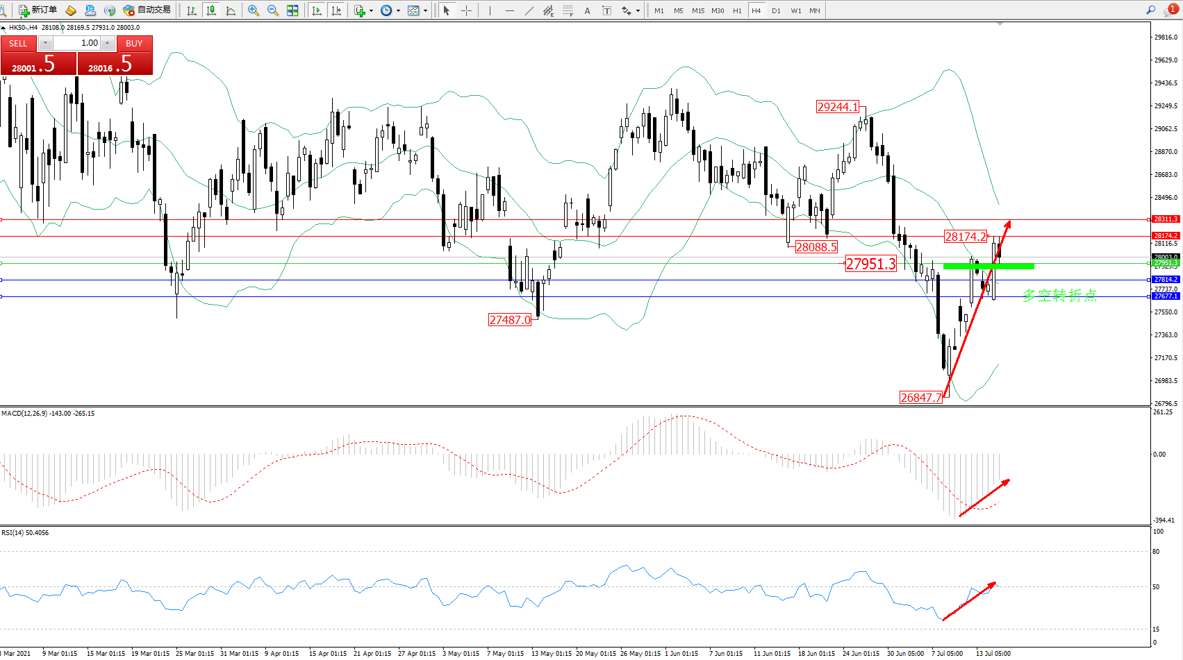技术点评:低位多头动力强势拉升,突破布林带指标中轨后短暂遇阻再度强势上扬,纠结于中上轨区间震荡中,短期多头或将维持上扬走势,布林带指标呈收口走势持续中,MACD指标处于空头区域低位持续震荡上扬,RSI指标处于空头区域持续震荡上移至50均衡线附近徘徊中;
