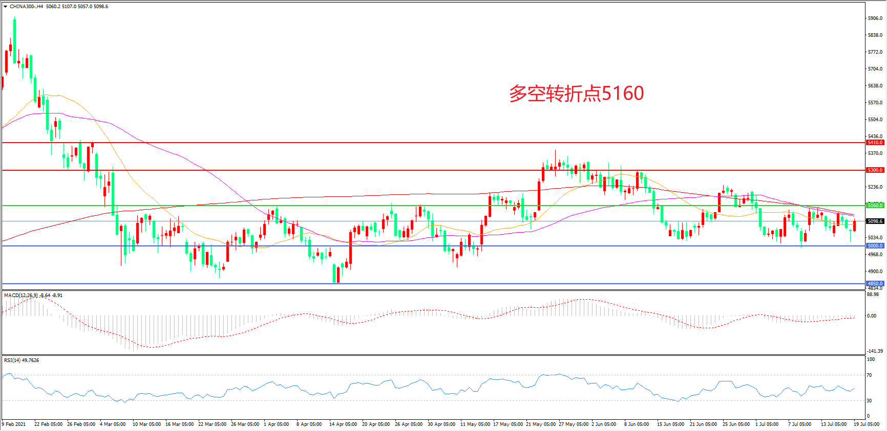 多空转折点:5160.00