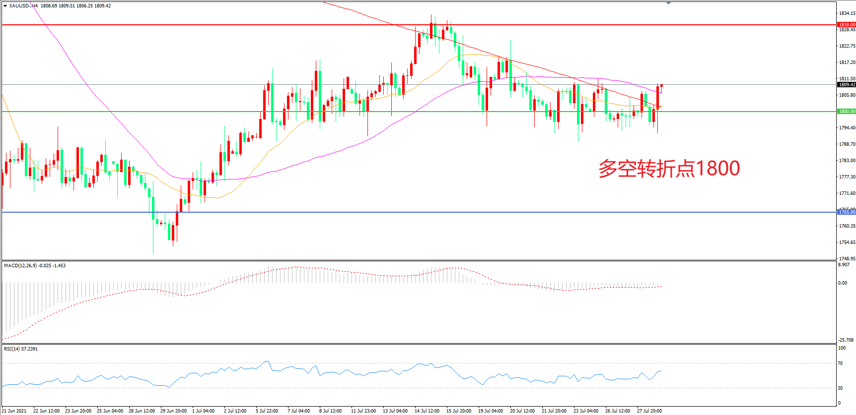 备选策略:在1800.00之下看跌,目标1765.00 1730.00